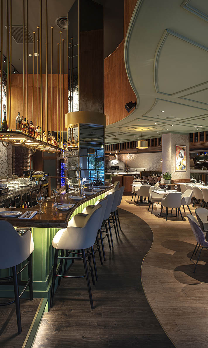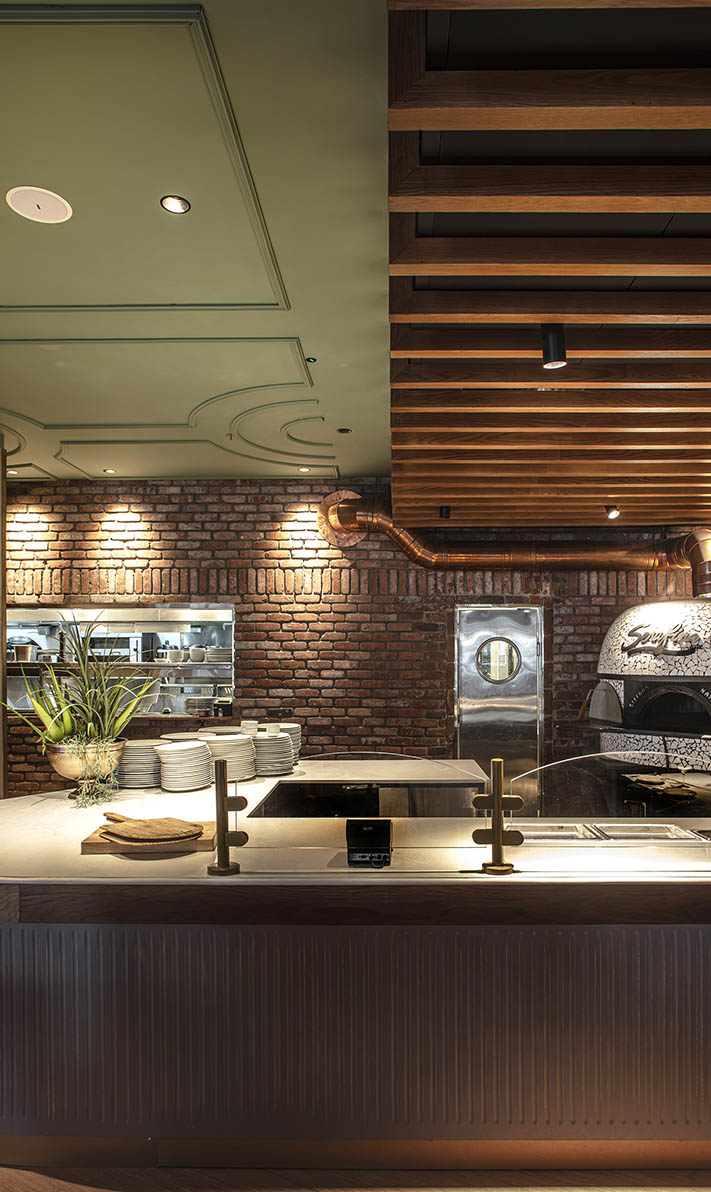 מידע על הפרויקט תכנון ועיצוב פנים למסעדת סרפינה בתל-אביב כתובת רח’ איינשטיין, תל אביב